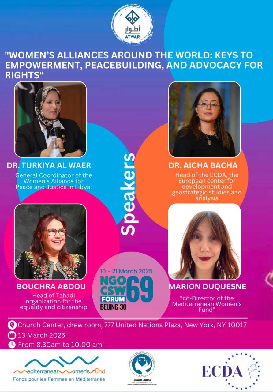 Aicha Bacha présidente de l’ECDA est ravie de partager les moments forts de sa participation à la 69ᵉ session de la Commission de la condition de la femme des Nations Unies (CSW69) à New York.